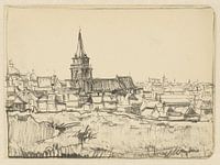 Dick Ket, Gezicht op de kerk temidden van lage huizen te Scheveningen, 1912-40 van Atelier Liesjes