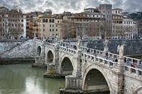 Die Engelsbrücke über den Fluss Tiber in Rom, direkt an der berühmten historischen Engelsbur