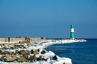 Die Mole in Warnemünde im Winter.