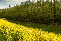 Foto van de Diefdijk bij Leerdam. Met gele bloemen op de voorgrond.
