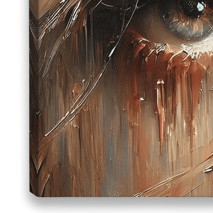 Laat je betoveren door dit krachtige olieverfwerk, waarin warme bruintinten tot leven komen in de vorm van twee diep expressieve amber groen kleurige ogen. De rijke, aardse kleuren en ruwe textuur brengen een gevoel van mysterie en warmte. De intense blik van de amberkleurige ogen nodigt uit tot reflectie en emotionele verbondenheid.…