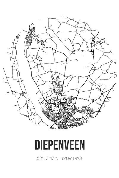 Koop dit abstracte kunstwerk Diepenveen (Overijssel) | Landkaart | Zwart-wit van Stad & Wand als print op canvas, aluminium dibond, (ingelijste) fotoprint, behang en ArtFrame. Voor jou op maat geprint in Fine-Art kwaliteit.