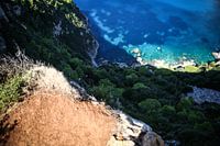 Kijk over het randje de diepte in, naar een prachtige blauwe zee.