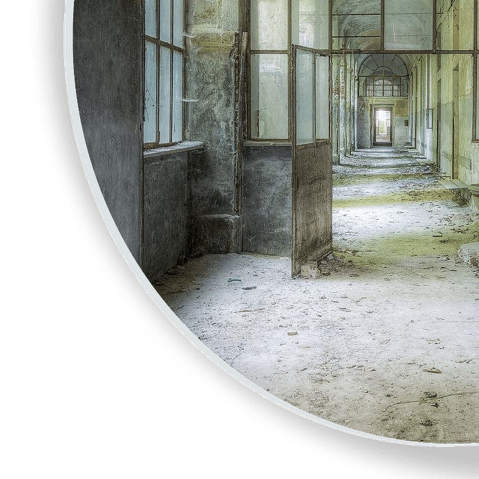 Een oude ziekenhuis in een dorpje in Italië. Totaal in verval geraakt. Lege gangen en kamers. Prachtige was dit doorkijkje. Aan het eind van de gang is er altijd wel een deur die open is.