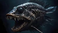 Hang deze foto op aan je muur en laat je meevoeren naar de donkere en mysterieuze wereld van de diepzee. Laat je betoveren door de schoonheid en de gruwelen van de natuur, en laat de monsterachtige lantaarnvis je herinneren aan de grenzeloze diversiteit van het leven op onze planeet.