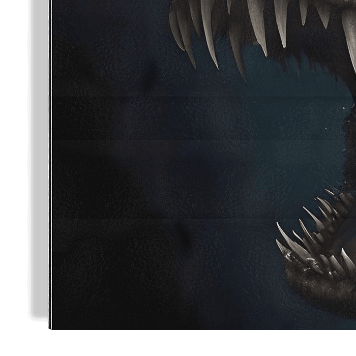 Stap binnen in de duistere diepten van de oceaan, waar de schaduwen fluisteren en geheimen zich verschuilen. Deze intrigerende foto toont een monsterachtige lantaarnvis, een angstaanjagend wezen van de diepten, met donkere, bijna hypnotiserende zwarte ogen die scherp afsteken tegen zijn duistere omgeving. Met zijn lange, vlijmscherpe…