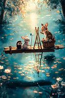 Ontdek de magie van dit schilderachtige tafereel waarin dieren een vredig moment delen op een vlot, drijvend in een serene vijver. Met verfijnde details van de natuur en het zachte lichtspel op het water, brengt dit ontwerp een betoverende sfeer naar elke ruimte. Perfect voor liefhebbers van dieren en kunst, dit kunstwerk combineert een warme en uitnodigende uitstraling met een unieke twist. Laat je meevoeren naar een wereld van creativiteit en rust. Een ideaal statement stuk voor je slaapkamer, woonkamer of hobbykamer.