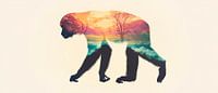 Een fascinerend samenspel van de natuur ontvouwt zich in de foto, waar het silhouet van een majestueuze aap samensmelt met levendige landschappen. De zachte kleuren van de lucht en de bomen geven de foto een rustgevende sfeer. Ideaal voor in de woonkamer, creëert het een uitnodigende en inspirerende omgeving die aanzet tot dagdromen.