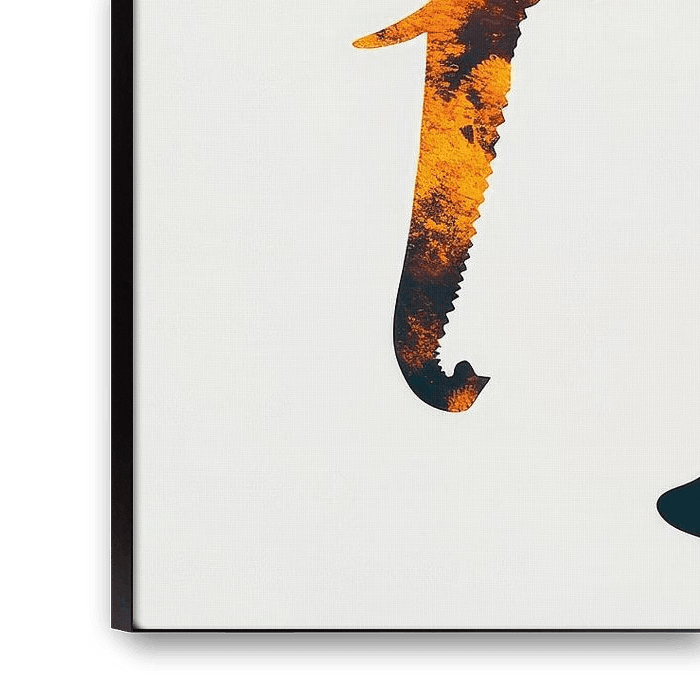 Een majestueus silhouet van een olifant, gevuld met de levendige kleuren van de natuur, straalt rust en een gevoel van avontuur uit. De glooiende heuvels en het warme kleurenpalet geven een gevoel van vrijheid en oneindigheid. Ideaal voor de woonkamer om een uitnodigende en inspirerende sfeer te creëren die de verbeelding prikkelt.