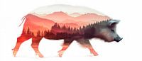 Een harmonieus samenspel van natuur en wilde dieren ontvouwt zich in zachte kleuren en fascinerende silhouetten. De vredige bergen en bossen die het varken omringen spreken van landelijke idylle en vrijheid. Dit kunstwerk is perfect voor in de woonkamer, waar het aanzet tot gesprekken en een warme, uitnodigende sfeer creëert.