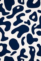 Een fascinerend samenspel van diepe, marineblauwe vormen ontvouwt zich op een lichtgekleurde achtergrond. De organische contouren en dynamische contouren zien er levendig en uitnodigend uit, alsof ze je uitnodigen om te dansen. Dit patroon combineert elegantie en speelsheid en doet denken aan de mysterieuze gratie van de natuur.