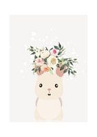 Uit de serie Dierenvrienden: Mimi het konijn. Super leuke print voor de kinderkamer. In mooie pastelkleurtjes. Hier wordt ieder kindje vrolijk van.