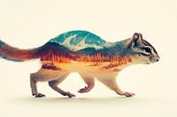 Een harmonieus samenspel van natuur en wilde dieren ontvouwt zich als een vrolijke eekhoorn wandelt met majestueuze bergen en gloeiende bossen in zijn lichaam. Deze levendige compositie brengt een gevoel van vrijheid en avontuur in de kamer en is perfect voor de woonkamer om te inspireren en levenslust op te wekken.