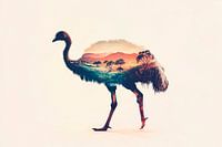Dit creatieve kunstwerk verbeeldt een fascinerend samenspel van natuur en dieren. Het silhouet van een struisvogel is liefdevol ingevuld met een schilderachtig landschap dat uitnodigt om te dromen. Het is ideaal voor een woonkamer en geeft elke ruimte een harmonieuze en inspirerende sfeer. De combinatie van dier en landschap inspireert en stimuleert de verbeelding.