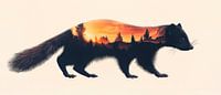 Een fascinerend samenspel van natuur en wilde dieren: het silhouet van een dier wordt tot leven gebracht door een adembenemende landschapsscène bij zonsondergang. De delicate kleurovergangen en harmonieuze compositie creëren een rustgevende sfeer in de woonkamer, perfect voor momenten van ontspanning en inspiratie. Een echte blikvanger die liefde voor de natuur uitstraalt.