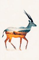 Een harmonieuze combinatie van natuur en wilde dieren: een elegant silhouet van een antilope gevuld met de levendige kleuren van een vredig landschap. Deze kunstzinnige afbeelding straalt rust en majesteit uit. Perfect voor in de woonkamer, waar het een gesprek kan stimuleren en een ontspannen sfeer kan creëren. Een blikvanger die de liefde voor de natuur belichaamt.