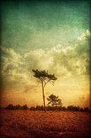 Een duo van bomen op de heide. Bewerkt met verschillende lagen textuur.