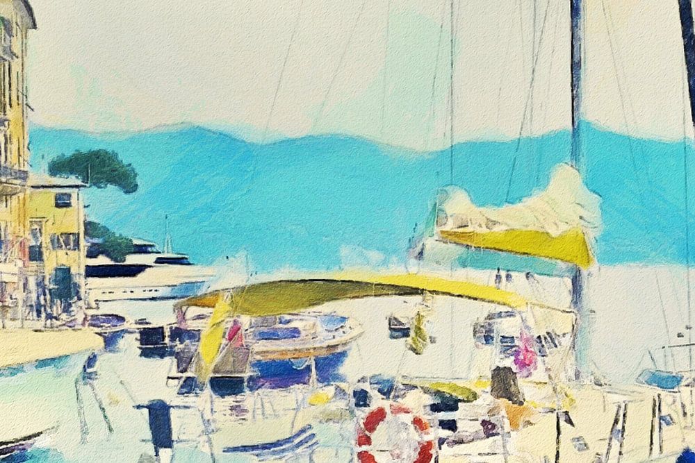 Een digitaal Schilderij van Portofino aan de Italiaanse Rivièra of Riviera in Italie of Italië.