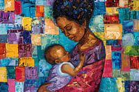 Koop dit portret Digitaal abstract schilderachtig portret fictieve vrouw en kind van Egon Zitter als print op canvas, aluminium dibond, (ingelijste) fotoprint, behang en ArtFrame. Voor jou op maat geprint in Fine-Art kwaliteit.