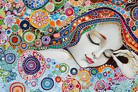 Digitaal abstract schilderachtig portret fictieve vrouw en kind