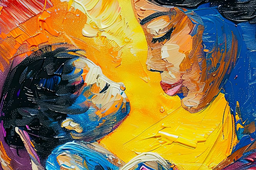 Digitaal abstract schilderachtig portret fictieve vrouw en kind