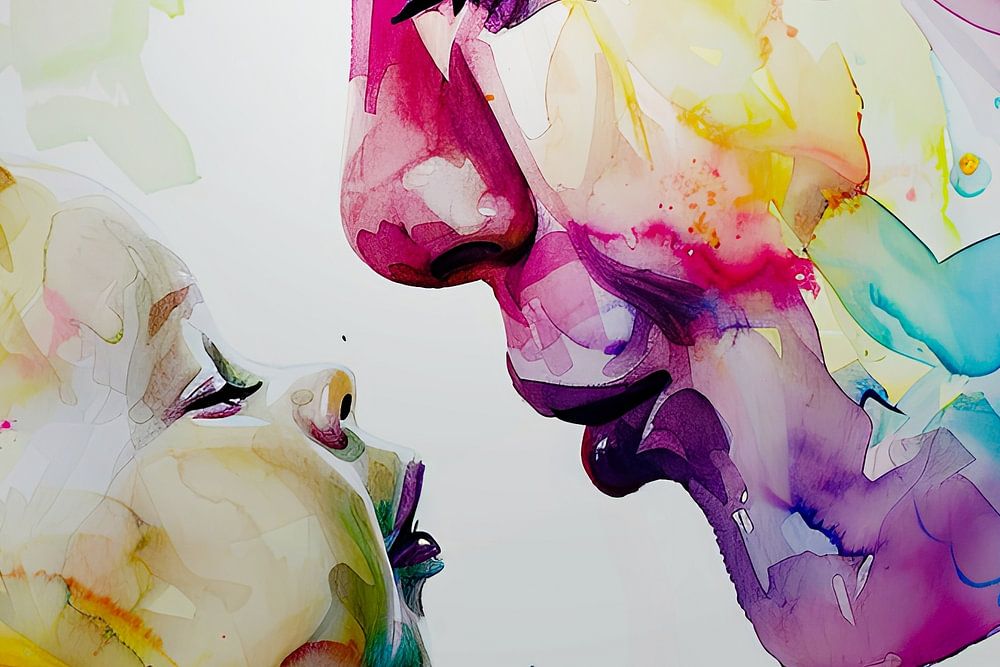 Digitaal abstract schilderachtig portret fictieve vrouw en kind