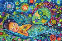 Digitaal abstract schilderachtig portret fictieve vrouw en kind