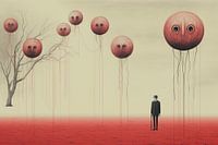 Digitaal creëerde Abstract minimalistische en surrealistische bizarre landschap en bewoners