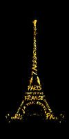 De Eiffeltoren is een bekend oriëntatiepunt in Parijs en is wereldwijd bekend als een symbool van Frankrijk. De grafische uitvoering toont de toren die alleen uit woorden. Zeer modern en minimalistisch werk in stijlvolle gouden tint. Typografisch ontwerp, een echte eye-catcher!
