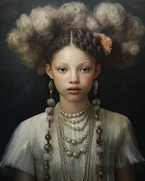 Digital art portret "Beautiful girl". Portret van een meisje met sieraden en een bloem in het haar. Een bijzondere blikvanger voor je interieur!