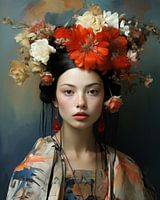 Digital art portret "Flower girl". Dit is geen foto, maar ook geen schilderij. Dit werk is zorgvuldig samengesteld met behulp van AI en photoshop. Kies zelf het formaat en het materiaal en maak het werk helemaal naar jouw wens!