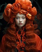 Digital art portret "I love orange". Dit is geen foto en geen schilderij, maar een zorgvuldig samengesteld beeld met behulp van AI en photoshop. Een bijzonder werk voor aan je muur! Kies zelf het formaat en het materiaal en maak het werk helemaal passend naar jouw wensen.