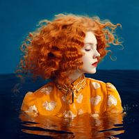 Digital art portret in oranje tinten. Kies zelf het formaat en het materiaal waarop je dit portret laat afdrukken en maak er zo een echte blikvanger voor je wand van!