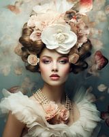 Digital art portret in pastelkleuren: "Flower girl". Een echte blikvanger voor aan je wand! Kies zelf het formaat en het materiaal om zo het werk helemaal naar wens te maken.