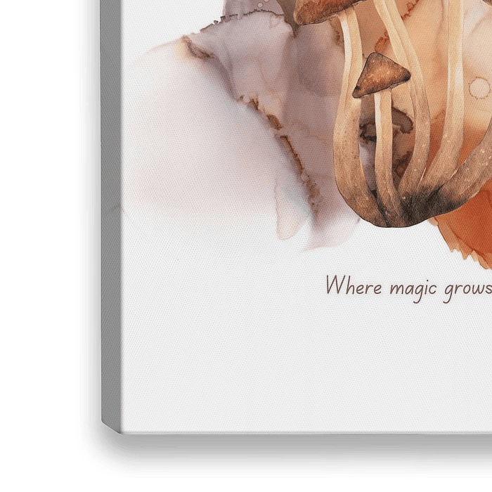 Koop dit digital art kunstwerk Digitale Print van Paddenstoelen in Aquarel - "Where Magic Grows" van Rozy art als reproductie op canvas, aluminium dibond, (ingelijste) fotoprint, behang en ArtFrame, op maat geprint in Fine-Art kwaliteit.