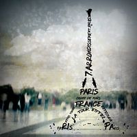 De Eiffeltoren is een bekend oriëntatiepunt in Parijs en staat wereldwijd symbool voor heel Frankrijk. De grafische voorstelling toont de toren die alleen uit woorden bestaat. Modern en decoratief motief!