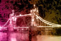 Tower Bridge is een verkeersbrug over de rivier de Theems in Londen en genoemd naar de Tower of London. Hij werd geopend in 1894 en verbindt het stadsdeel Tower Hamlets aan de noordkant met het stadsdeel Southwark in de Londense deelgemeente Southwark aan de zuidkant. Lange belichting van de scène bij nacht. Een modern en decoratief werk. Zeer individueel!