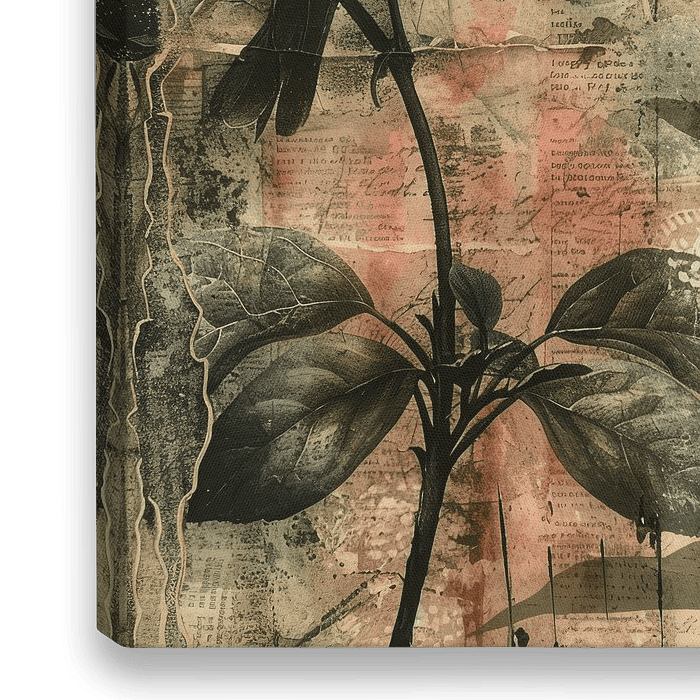 Digitale mixed media collage met botanische elementen en een merel (vogel). Kies zelf het formaat en materiaal bij dit werk en maak er een echte blikvanger van voor jouw interieur.