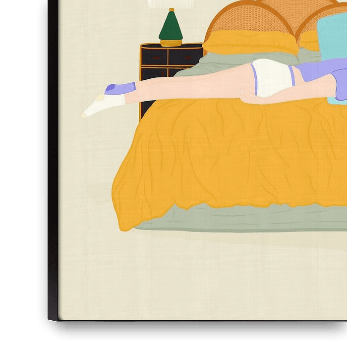 Levensvreugde spat van het scherm in de werken van Jota de jai. Deze Spaanse beeldmaker, opgegroeid tussen zeelieden, vertaalt haar dromerige jeugd op zee naar illustraties die barsten van kleur en fantasie. Vrouwen zwemmen door boeken, liggen lui op stapels kussens, of delen paraplu's onder sterrenhemel - elk tafereel voelt als een vrolijk dagdroommoment.