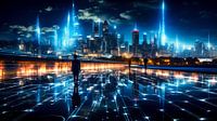 In het abstracte schilderij wordt de digitale transformatie op unieke wijze verbeeld. Door een slimme combinatie van vormen en kleuren creëert de kunstenaar een fascinerende symbiose tussen de digitale wereld en analoge kunst. Het schilderij is een echte blikvanger die een inspirerende sfeer creëert in zowel moderne kantoren als privé studeerkamers.