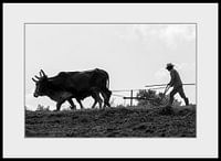 Twee ossen ploegen de akker in de Viñales-Vallei