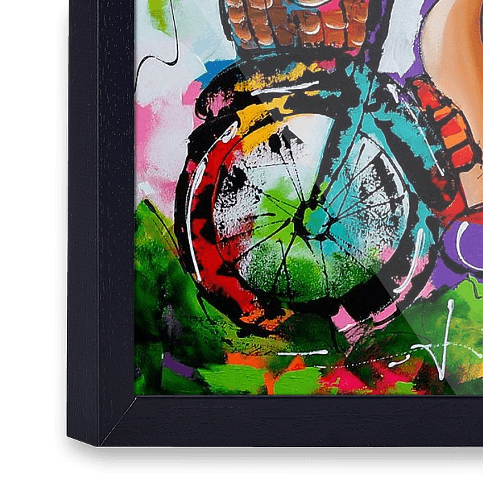 Koop dit abstracte kunstwerk Dikke Dames op de Fiets van Vrolijk Schilderij als print op canvas, aluminium dibond, (ingelijste) fotoprint, behang en ArtFrame. Voor jou op maat geprint in Fine-Art kwaliteit.