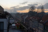 Valavond over Brussel ... De straatlichtjes zijn al aan. De basiliek is gehuld in dikke mistsluiers terwijl de zon nog zijn laatste mooie kleuren afgeeft.