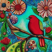 Ieder sympathiek mens houdt van vogeltjes is mijn uitgangspunt voor deze serie vogels. Vaak zie je zulke vogels vliegen, maar als ze gaan rusten schuilen ze het liefst tussen de takken van een struik of hoog in de bomen. Zulke vogels hebben altijd iets symbolisch voor mij gehad; ze zijn heel sterk van zichzelf maar tegelijkertijd zo kwetsbaar. Ik ben geen vogelexpert en in deze serie liet ik me gaan in de meest onmogelijke kleuren. In het echt bestaan ze niet maar in mijn gedachten nemen ze een speciale plaats in. Ik weet het: Ik zal altijd een kind blijven.