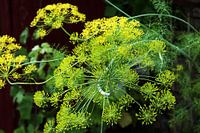 Ina Hölzel fotografie. De gele bloemen van de Dille maken een vrolijke indruk. De tere plant blijkt toch sterk te zijn in weer en wind. De lange stelen nemen soms eigenwijze vormen aan. De zaden worden in de keuken gebruikt, ook als decoratie in de vaas staat hij goed.