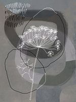 Abstracte botanische illustratie met dille bloem, organische vormen, texturen en merken.