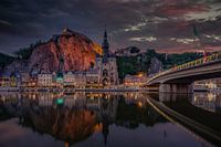Dinant bij zonsondergang met reflectie in rivier de maas