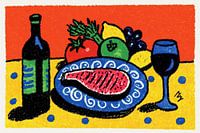 Details: steak, groenten, fruit, wijn, tomaat, appel, citroen,…