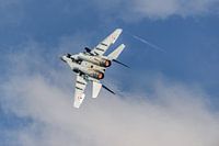 Een MIG-29 van de Poolse Luchtmacht maakt een dirty pass (landingsgestel uit) en klimt daarna uit waarbij gebruik wordt gemaakt van de naverbrander.