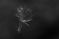 Lowkey belichting van schitterende witte distel pluis tegen zwarte achtergrond